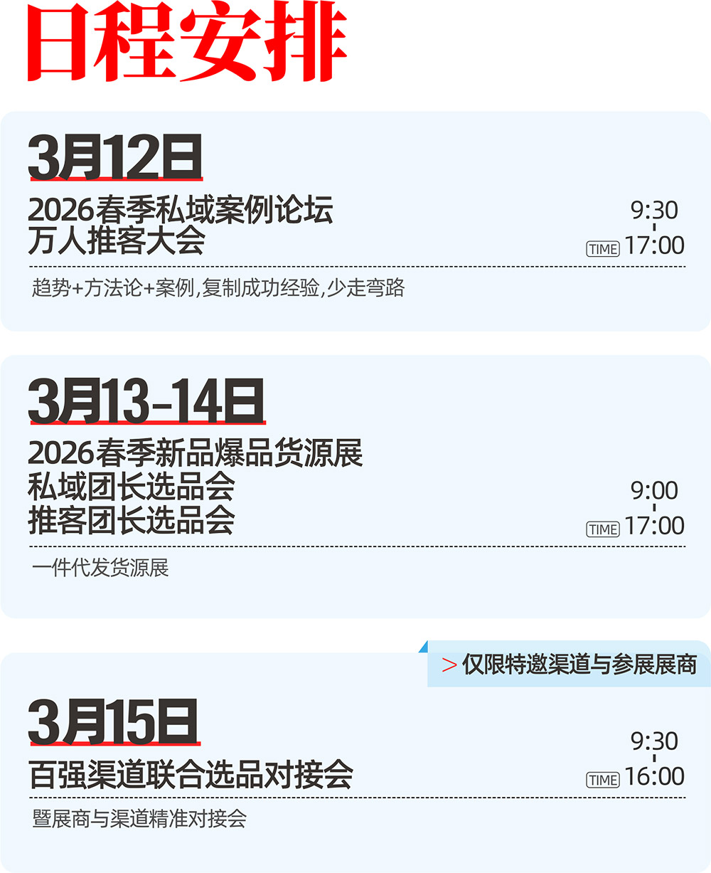 沸點會、全國私域大會、直播+社群團購貨源供應鏈展覽會由沸點會展創辦并獨立舉辦,至今已經連續成功舉辦到29屆。沸點會將于2026年3月13-14日在杭州國際博覽中心舉辦第30屆沸點會(杭州私域大會+展會,春季新品爆品展選品會)。