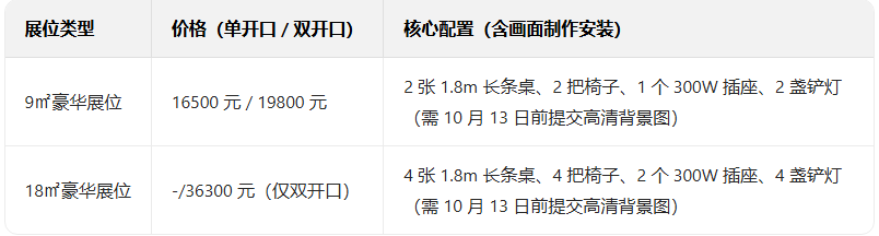 私域大會設置 9㎡、18㎡兩種豪華展位,均含定制搭建與核心權益,具體如下: