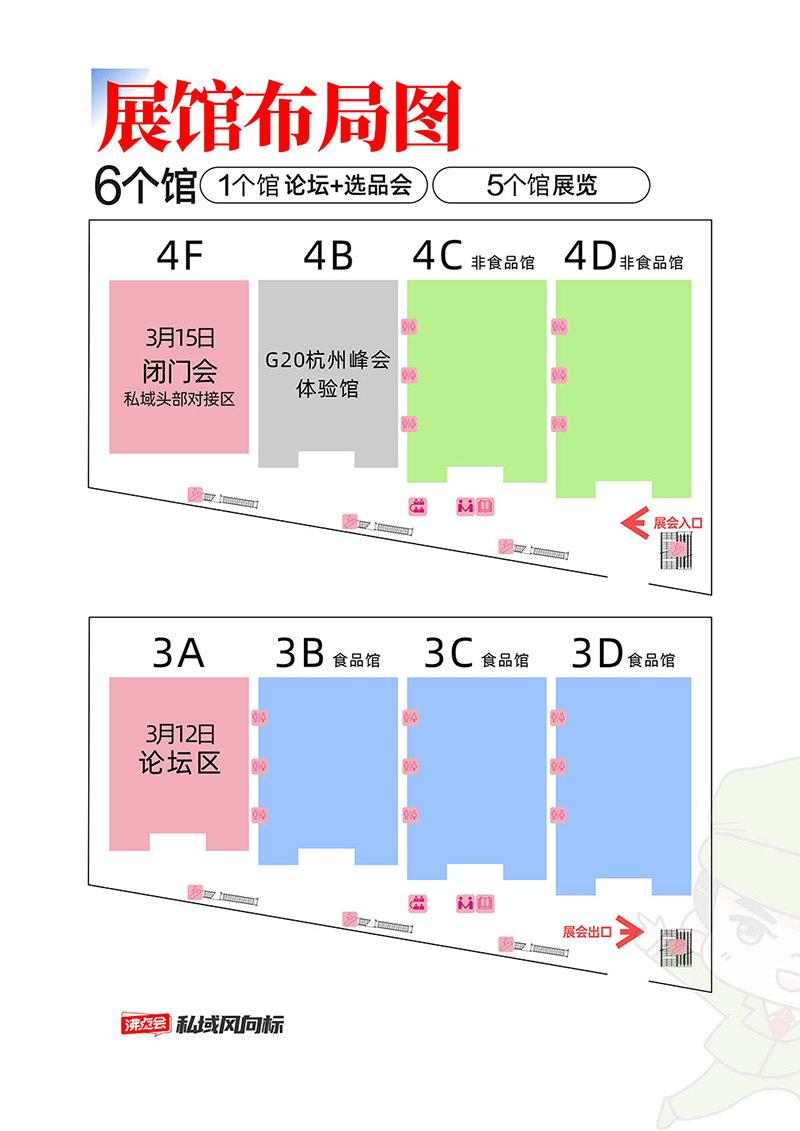 作為2026私域開年展,沸點會使用了杭州國際博覽中心三、四樓全部6個展廳,總面積達(dá)5萬平方米,設(shè)置食品飲料、美妝個護(hù)、服飾鞋包等12大品類展區(qū)及非遺老字號等特色展區(qū)。采用"5+1"模式(5個產(chǎn)品展廳和1個論壇廳),配套私域趨勢論壇、閉門推品會及選品對接日。1000余家展商展示萬余款產(chǎn)品。活動周期延伸至四天,包含3月12日論壇、13-14日主展期及15日閉門推品會。